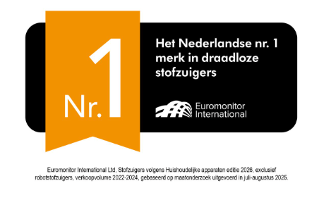 Dyson is al 3 jaar op rij het nummer 1 merk in snoerloze stofzuigers in Nederland.